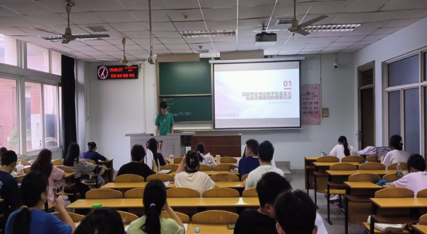 本次团会紧扣“倡导绿色发展,美丽中国青春行”的活动主题。活动伊始,刘婉仪带领全班同学认真学习了习近平总书记关于社会主义生态文明建设的重要论述,使同学们深刻认识到生态文明建设的重要意义和紧迫性,进一步增强了大家的环保意识和责任感。为了将理论与实践相结合,班级还积极开展了世界环境日主题实践活动。同学们通过讨论、分享环保经验等方式,共同探讨如何在日常生活中践行绿色发展理念,为建设美丽中国贡献自己的青春力量。