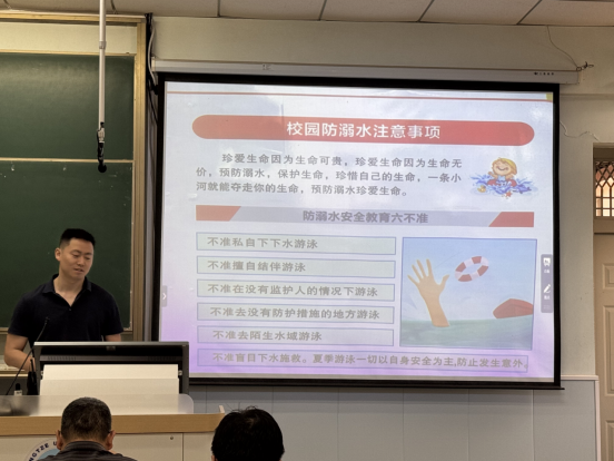 在于13教D125教室召开防溺水安全教育专题班会。本次班会由团委书记黄何主讲,全体研究生参加。