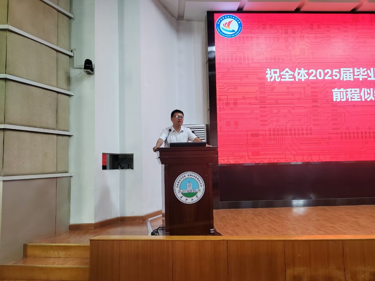 毕业年级大会在12教405报告厅隆重举行。典礼由黄何老师主持,院党委副书记谷军、院学工办主任姜曼、院团委书记黄何及全体毕业生齐聚一堂,共同见证这一重要时刻。