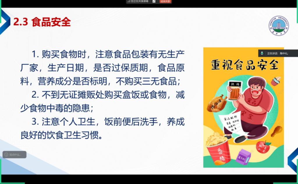 食品卫生安全也是班会的重要内容,陶中礼指出,食品安全关乎我们的生命健康,提醒同学们选择正规餐饮场所,避免食用不明来源的食品,并注意食物保存期限。同时,大家外出就餐时,应当保持谨慎,确保食品的安全性,避免食品安全事故的发生。