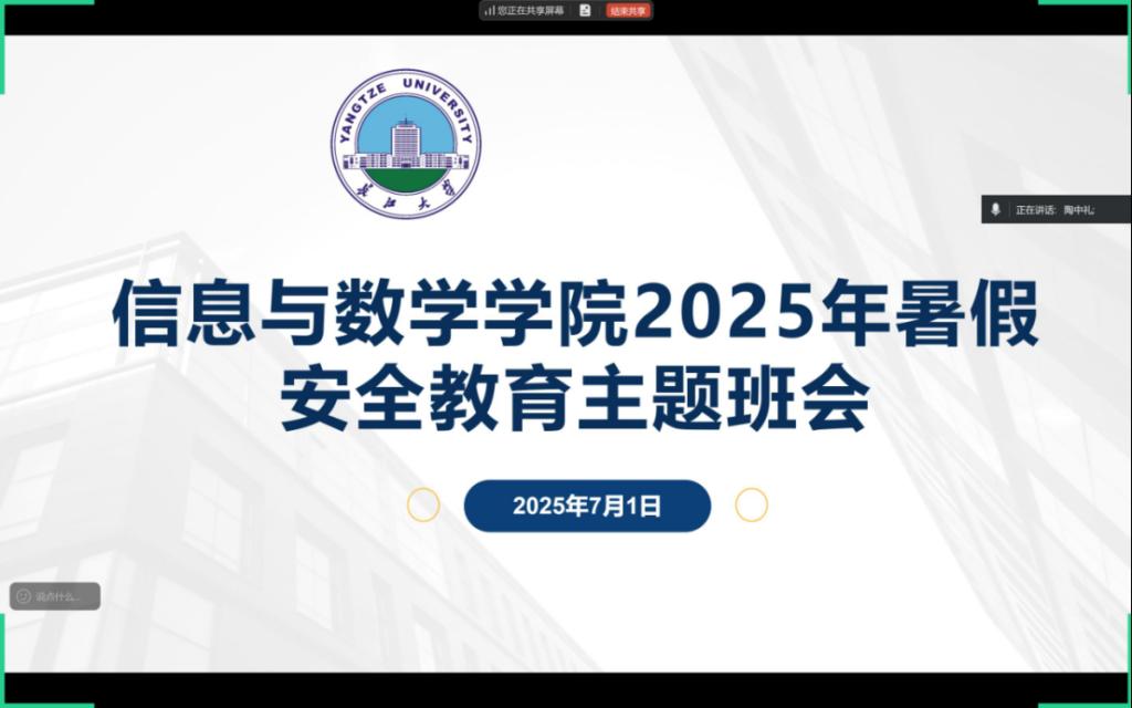于7月1日举办了线上安全教育班会。本次会议由陶中礼主持,会议内容从多个角度出发,帮助同学们提升了自我防范能力。