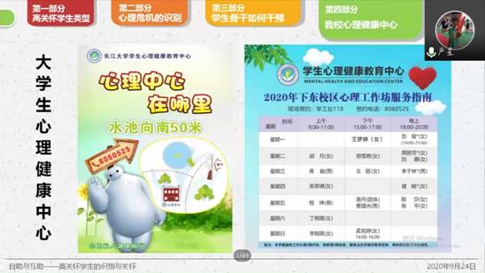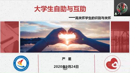 于9月24日下午3时举办心理培训讲座。本次讲座由严星老师主讲,17、18、19级和研究生各班班长、团支书、心育委员及寝室长参会。