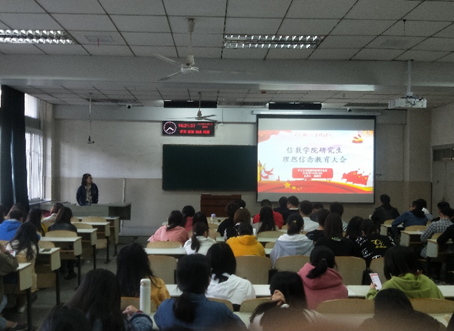 在东校区12教101教室举行了“理想信念教育大会”,学院副党委书记袁海山出席大会,全体研究生参会,会议由大福娱乐城