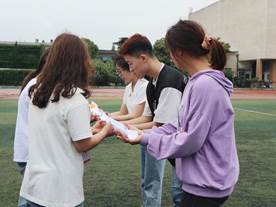 党委副书记袁海山为本次开幕式致辞,他强调本次活动旨在培养同学们学习数学的兴趣,让同学在紧张的学习之余可以放松心情,并希望同学们都能积极参与其中,全面展示自己,从丰富多彩的游戏中寻找乐趣。在魅力四射的开场舞之后,本届数学嘉年华正式开始。此次数学嘉年华活动分为7个游戏,分别是你抢你答、绑腿跑、测测肺活量、背夹球、抛绣球、珠行千里和抽牌算24。在绑腿跑活动中,破产姐妹队的成员之间相互配合,一次次练习,不断刷新记录。在背夹球、千里珠行等游戏中,混学疯队、骑联兵队和花园宝宝队的成员之间通过相互讨论,不断尝试和创新,最终找出最适合自己队的方法出色地完成了挑战。该游戏使同学们学会冷静思考、开动脑筋。抽牌算24、你抢你答等活动不仅丰富了参赛者的知识,锻炼了判断、计算能力,也通过严谨的逻辑训练使同学们更加仔细与谨慎。活动现场气氛活跃,欢呼声不断,主持处开放点歌环节更是将活动推向高潮。