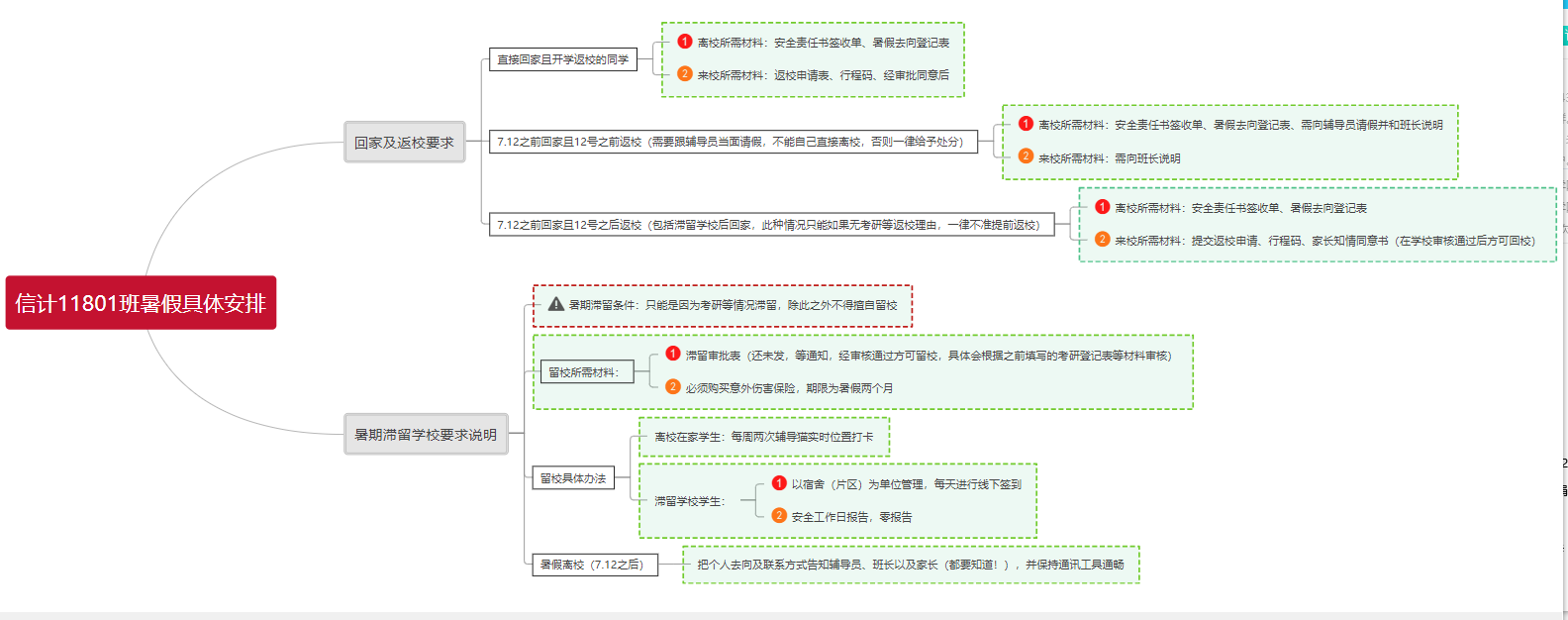 班会围绕“学习教育厅办公室关于切实加强全省校园安全工作的紧急通知”、“关于暑假三个阶段的学生疫情防控与安全管理工作”和“关于暑假滞留校内学生的审批与管理”三个方面展开,通过播放视频、PPT,轮流发言,集体讨论等各种形式开展安全教育。