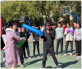 在东校区风雨球场面向全体研究生举办了“2021届研究生趣味运动会”。本次“趣味运动会”采取自由结组、每十人结组的形式,分设以下比赛项目:四人五足接力、踩气球、蒙眼气球搏击以及拔河友谊赛。