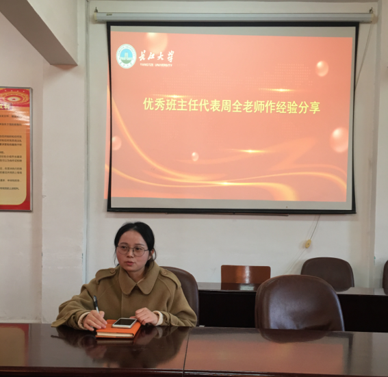 随后,优秀班主任周全老师为班主任们分享了她作班主任期间的心得与经验。她说我们一定要多鼓励、表扬学生,要投入精力在班级工作上,要做到与学生平等交流,这些观念也都得到了班主任们的一致赞同。