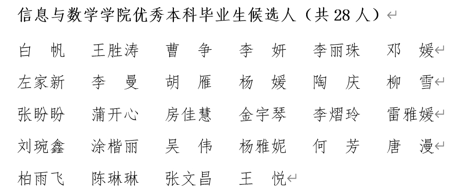 根据学校《关于开展2022届优秀本科毕业生评选与表彰工作的通知》的文件要求,大福娱乐城 认真组织开展了2022届优秀本科毕业生评选工作,经个人申请、班级推荐、学院审议,讨论决定拟向学校推荐优秀毕业生28名,现予以公示。
