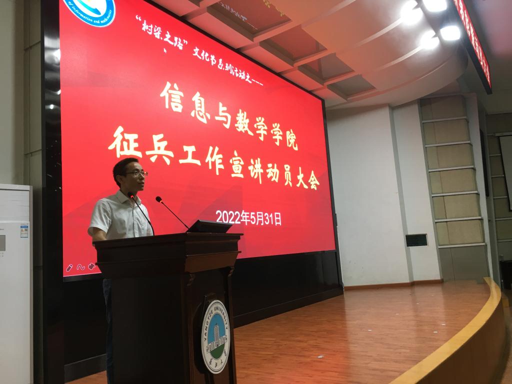分别于5月31日19:00在12-405、6月2日9:00在8-400会议室召开征兵宣讲活动。宣讲覆盖全院学生,辅导员全体参会。会议由袁海山主持。