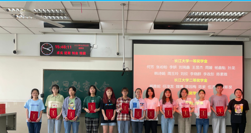 于6月2日下午15:30在12教302举办感恩教育大会。院党委副书记袁海山、学工办主任严星及18、19、20、21级获得奖助学金的学生与会。本次活动由高一好主持。