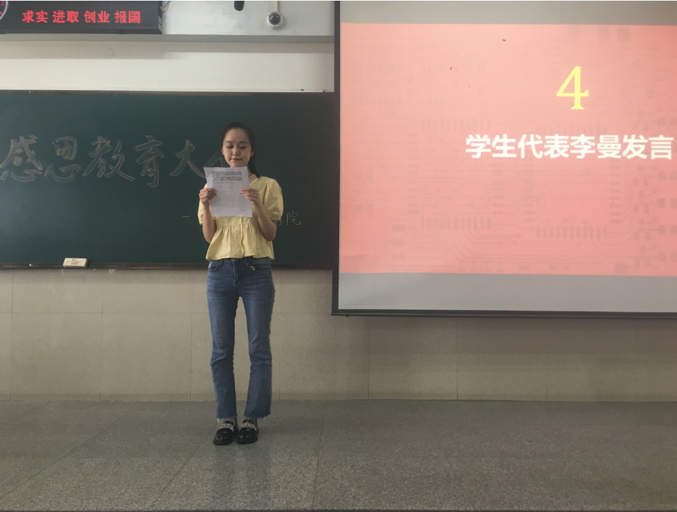 大会第四项,获得奖学金的学生代表李曼发言。她表示,学习是一个漫长的过程,她十分感谢在求学路上帮助过自己的人,并呼吁全体学生努力学习,全面发展,以优异的成绩来回报对自己施以援手的人。