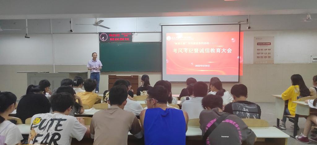 在12教104教室召开考风考纪暨诚信教育大会。院党委副书记袁海山主讲,大福娱乐城