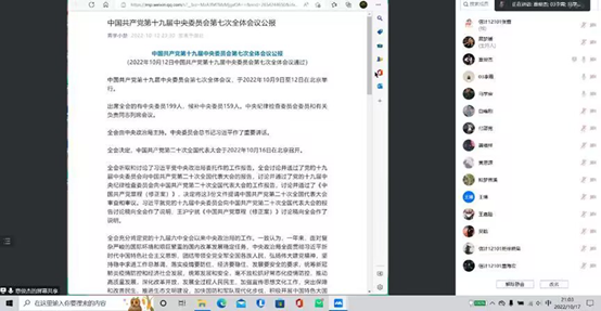 全体学生以班级为单位,采取线上交流的方式一起深入学习了此次会议公报精神,让所有学生一同参与学习,一起交流。公报伊始,总结了党的十九届中央纪律检查委员会的工作。会中审议并通过了中共中央纪律检查委员会部分人员严重违纪违法问题的审查报告并分析了当前形势和任务,深入讨论了新时代新征程,坚持和发展中国特色社会主义、全面建设社会主义现代化国家的若干重大问题,为召开党的第二十次全国代表大会作了充分准备。大家于此共同领略了党和国家的发展历史与伟大成就,会后大家纷纷表示将以坚定的理想信念为根基,让脚步在历练中坚实,让青春在奋斗中闪光,以青春之我书写无愧于党、无愧于人民的时代答卷。会议最后,由各班团支书进行总结发言,简单讲解会议公报重点,带领同学们学习会议精神,引导同学们做一名有理想、有志向的新时代青年,做一名坚持跟党走的有志青年。