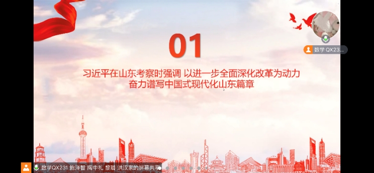 会上,学生们集中学习了习近平总书记在山东考察时的重要讲话,深入探讨了全面深化改革的动力以及推进中国式现代化在山东的具体实践。并对习近平总书记关于学校思想政治课建设的重要指示与总书记在中共中央政治局第十四次集体学习时强调的促进高质量充分就业的重要讲话进行了深入解读。同学们结合自己的实际情况,探讨了思想政治课建设的重要性及如何在新时代背景下提升劳动者的获得感、幸福感和安全感等问题。