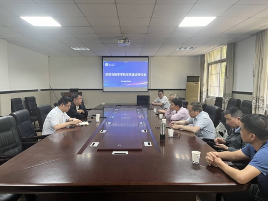 学风建设研讨会。学院副院长李向军,院党委副书记谷军,高等代数及数学分析课程骨干教师参与此次会议。