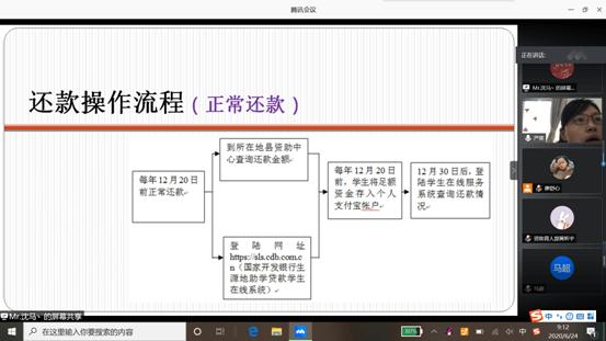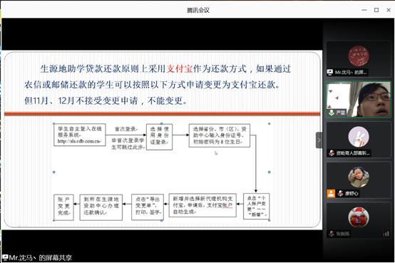 2020届毕业生了解生源地贷款还款流程。资助专干严星老师在腾讯会议平台上召开2020届毕业生生源地贷款还款流程讲解会,对2020届进行生源地贷款的毕业生详细讲解生源地贷款还款须知。