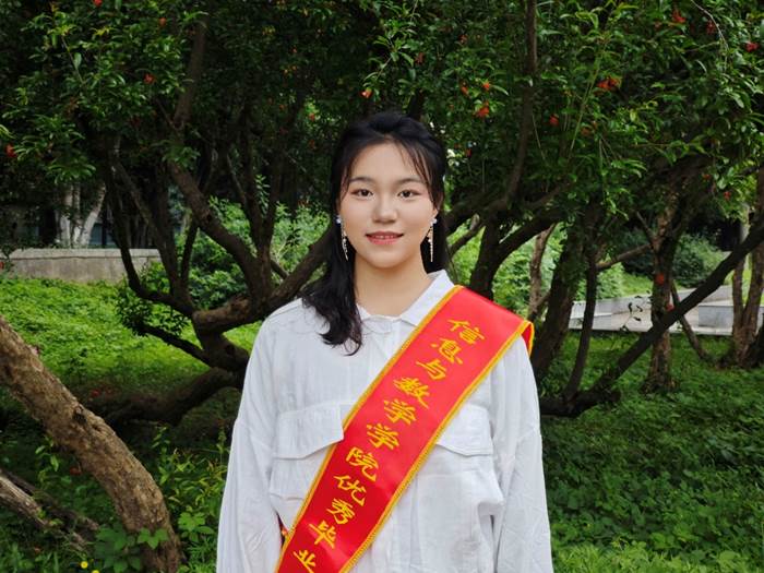 自大一入校以来,她始终将学习放在第一位,在各个方面取得了不错的成绩。大一担任班级组织委员,自大二至大四担任班级团支部书记,曾担任院学生会组织部部长、院团委副书记,现任院本科生学生党支部副书记。积极参加各项社会实践活动,如无偿献血、图书馆整理书籍、关爱流浪动物等;通过英语四六级、英语口语考试,获得英语B+等级证书、普通话二级甲等、获得高中数学教师资格证;参与校级大学生创新创业训练计划项目一项;曾获全国大学生数学建模竞赛省二等奖、美国大学生数学建模竞赛一等奖、湖北省师范生技能大赛三等奖、全国大学生市场调查与分析大赛省二等奖;曾获长江大学三好学生1次、长江大学优秀学生干部1次、长江大学优秀团支部书记标兵1次、优秀共产党员1次、先后获得长江大学一等奖学金、国家励志奖学金、国家奖学金,获院级三好学生标兵等个人荣誉十余次,现已成功推免至华中农业大学攻读硕士研究生。