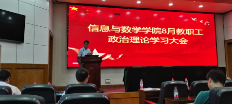 在11教报告厅开展8月教职工政治理论学习。学院党委书记李喜成主持学习活动,院领导班子成员及全体教职工参加会议。