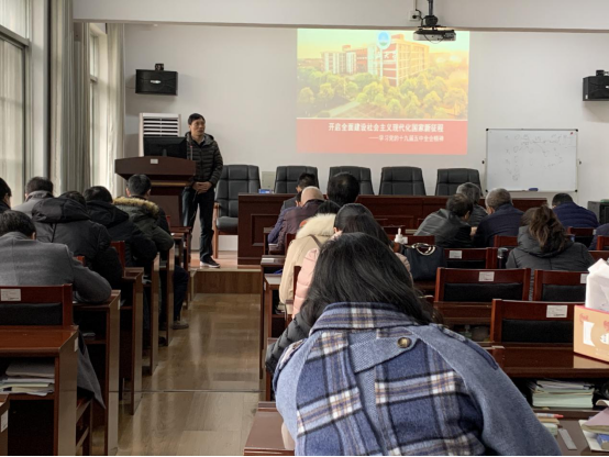 党委书记高迎斌以《学习领会精神,紧跟时代步伐》为题,对党的十九届五中全会精神进行宣讲。会议由学院院长张涛主持,荆州校区教师现场参会,武汉校区教师由潘大勇老师组织集体学习。