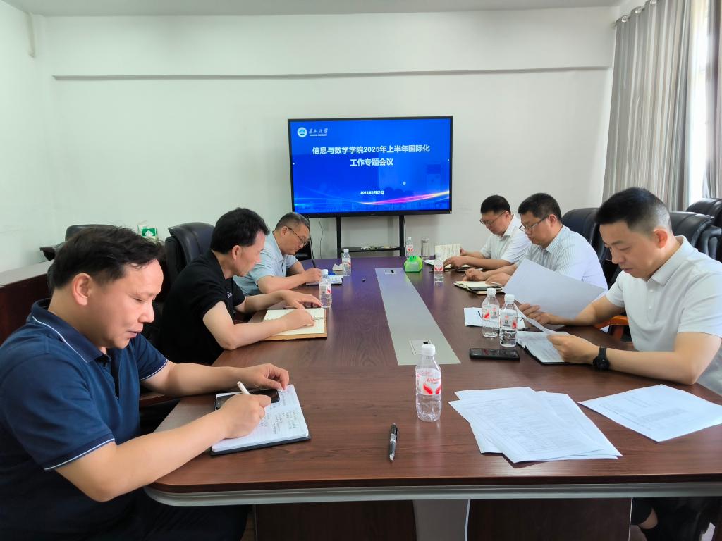 在8教417会议室召开 2025 年上半年国际化工作专题会议,旨在进一步推进学院国际化发展战略,提升学院在国际学术交流、人才培养等方面的水平。院长张涛主持会议,党委书记李喜成、党委副书记谷军、副院长李向军、副院长李治、办公室主任张定国、外事秘书周鹂参与会议。