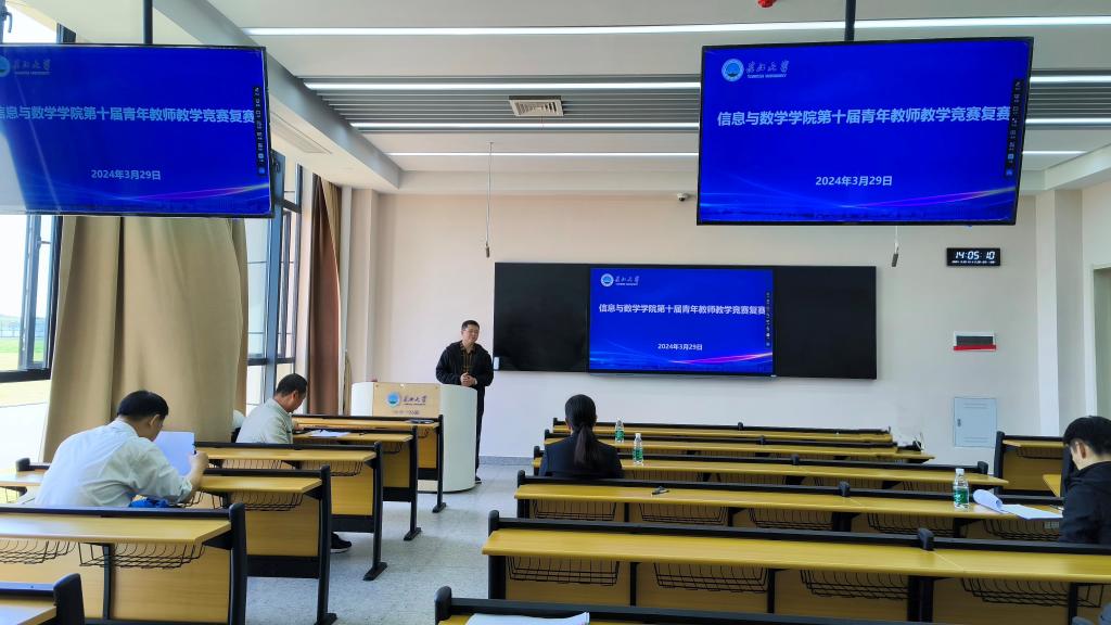 第十届青年教师教学竞赛复赛在东校区智慧大楼C106教室顺利举行。复赛由教学副院长李向军主持,学院教学指导委员会和教学督导委员会成员担任评委。
